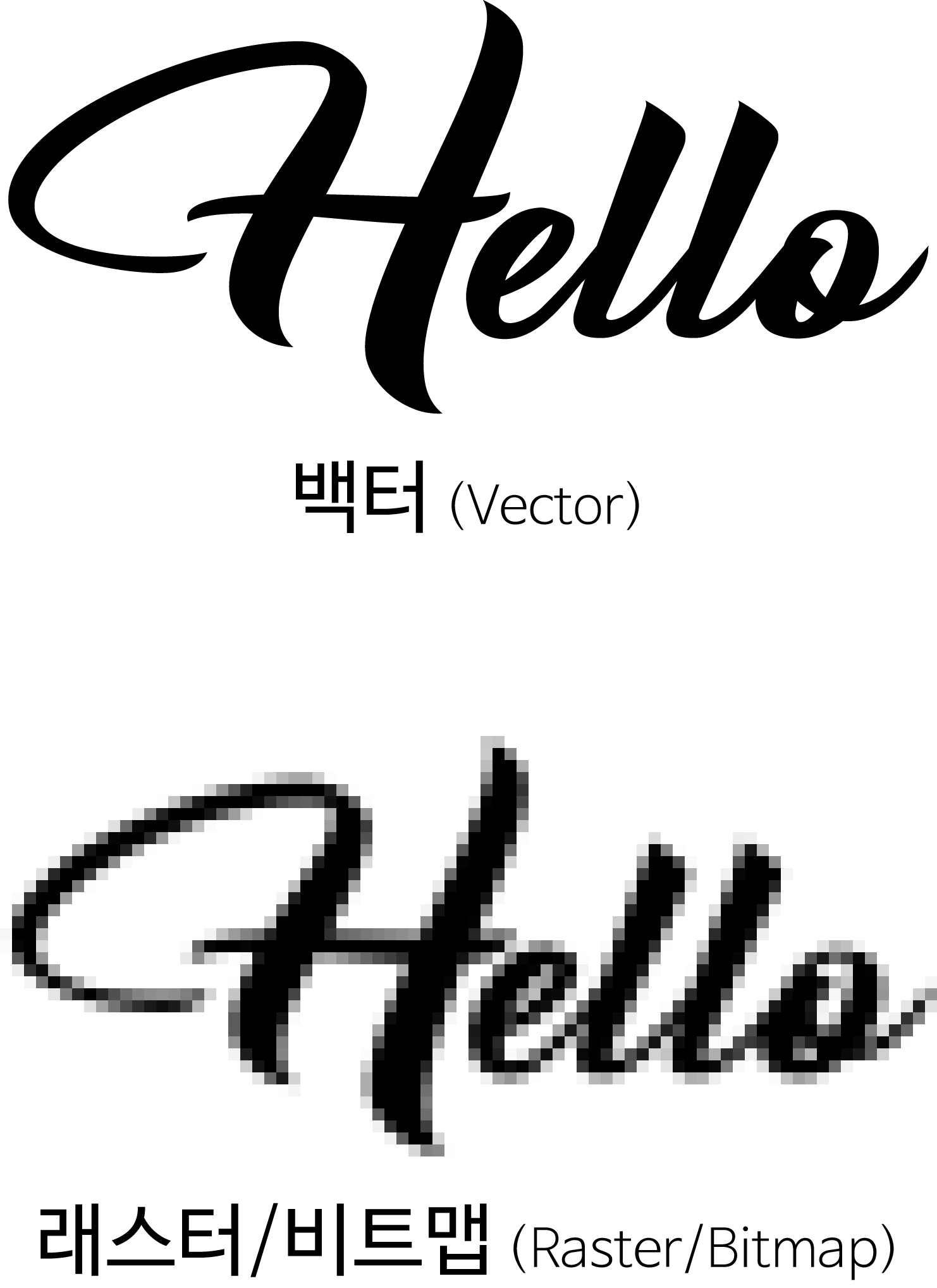 벡터의 점은 좌표계(x,y)로 구성되기 때문에 비트맵의 픽셀과 달리 이미지의 크기 조절이나 변형 때문에 해상도가 깨지지 않는다